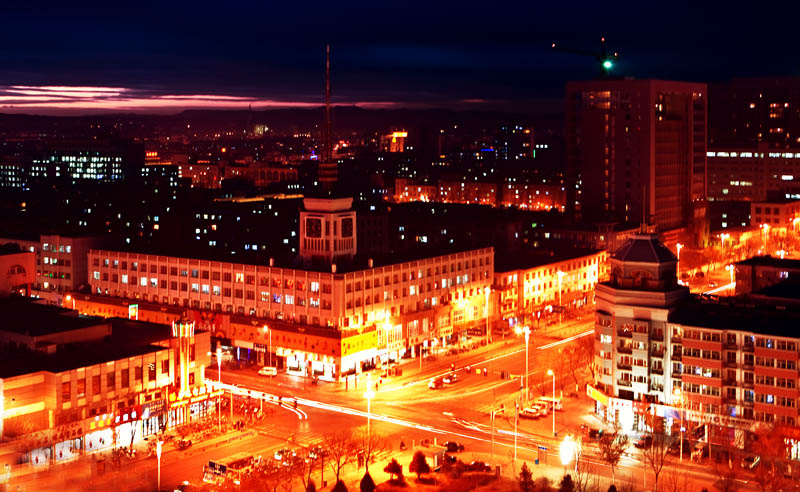 (他们两人停下脚步,深情地看着赤峰这座城市。)